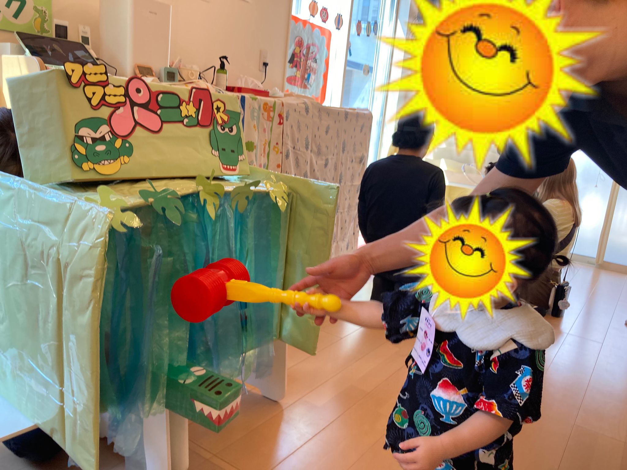 子どもたちの製作や、保育者手作りのひも引きや輪投げやワニワニパニックなどのゲームもあり、最初は緊張などでゲームはママパパがするのを見ていたり一緒にしていた子ども達が、時間が経つとそっと戻ってきて一人でしようとしている姿をみて、周りの雰囲気に安心できたからこそ挑戦しようとしてくれたんだなあと頑張りや逞しさに微笑ましく思い、改めて子ども達の姿に感心でした😢✨